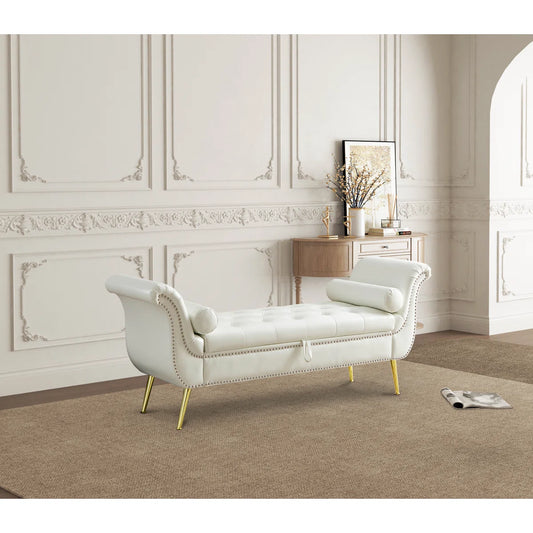 This multi-functional sofa bench is a masterful blend of elegant design, comfortable seating, and clever functionality. Adorned with classic details like button tufting and nailhead trim, and supported by striking golden metal legs, it serves as a sophisticated accent piece. Beyond its looks, it...