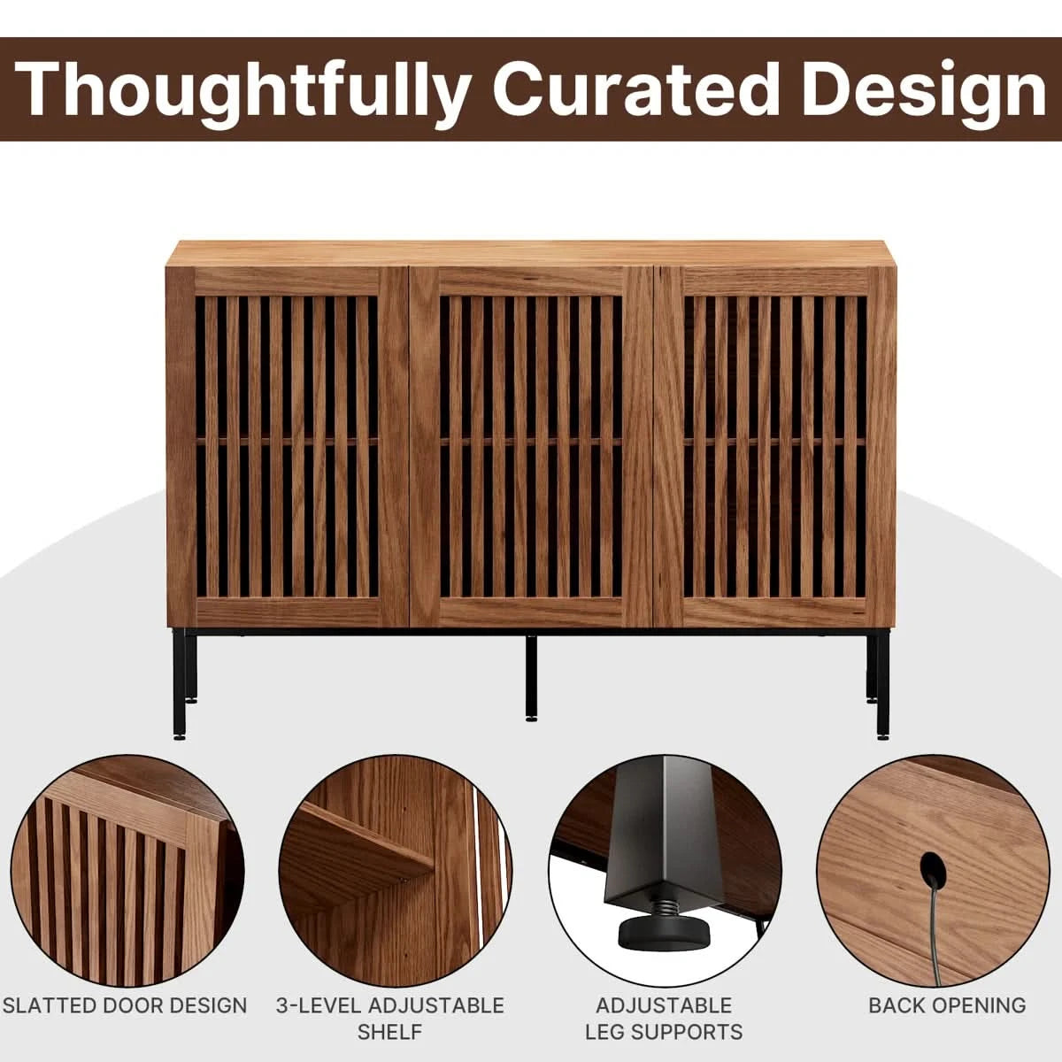 Coffee Bar Cabinet, 47.2'' Sideboard Buffet Cabinet with Storage and Adjustable Shelves, Storage Cabinet with 3 Doors for Kitchen, Dining Room, Living Room