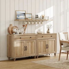 This versatile buffet cabinet functions as a sideboard, bookcase, or display cabinet to suit your needs. Crafted from durable P2-grade MDF, it offers long-lasting use and ample storage and display space for dishes, books, or decor. The glass doors and elegant design make it a stylish addition to your dining room, living room, or office, enhancing any space with a cozy, refined touch.