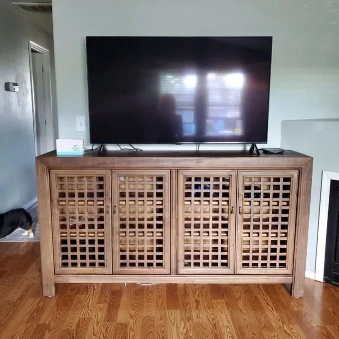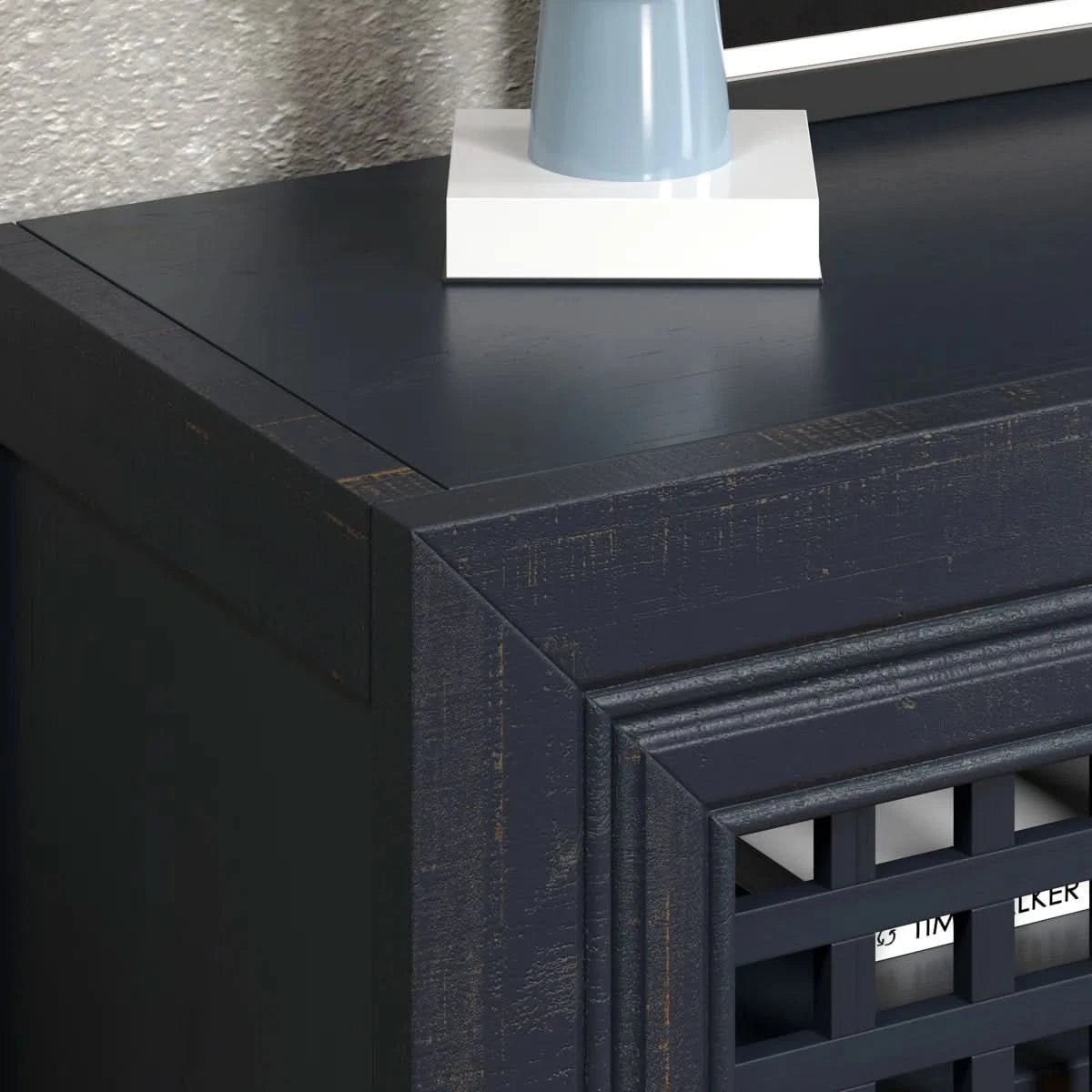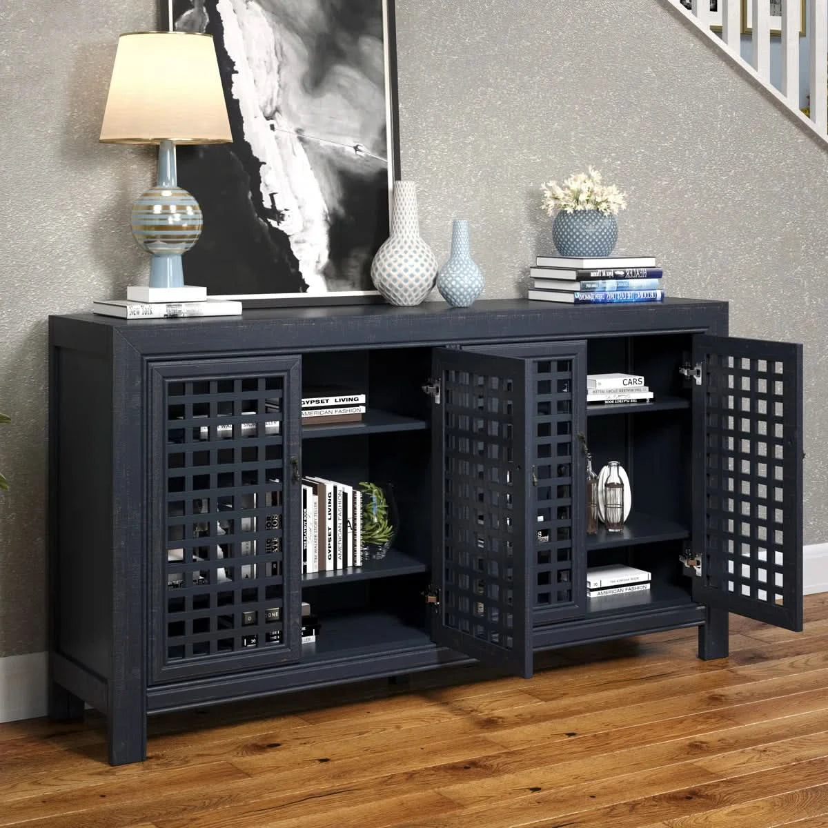 Add timeless charm with this 70" vintage sideboard, crafted from solid pine wood with a neutral, weathered finish. Lattice-style double doors open to reveal adjustable shelves—perfect for barware, dinnerware, or linens. The spacious top offers room to serve, display, or style your favorite decor.