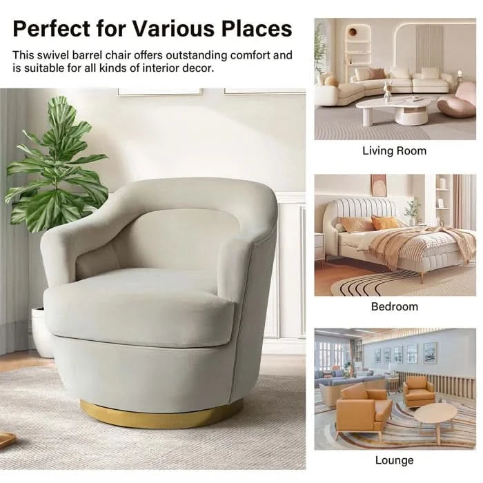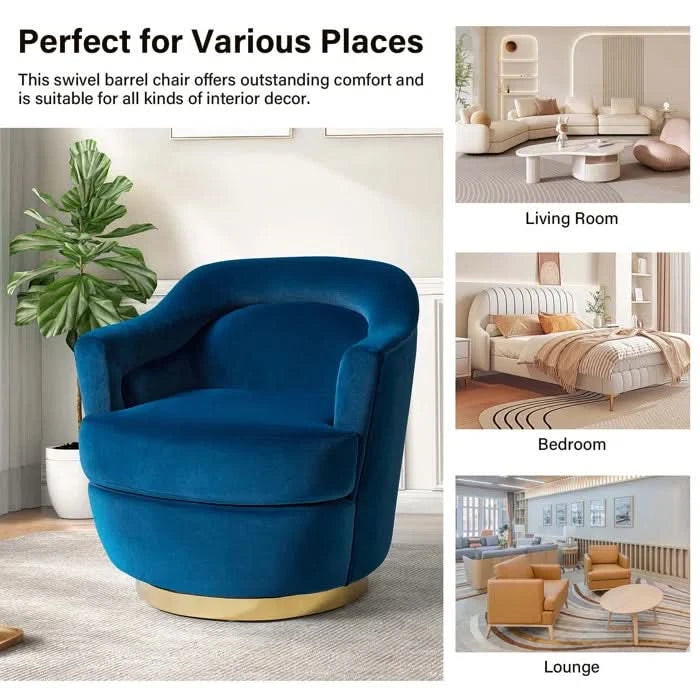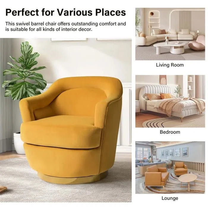 - Beraich Velvet Swivel Barrel Chair - Wooden Bazar