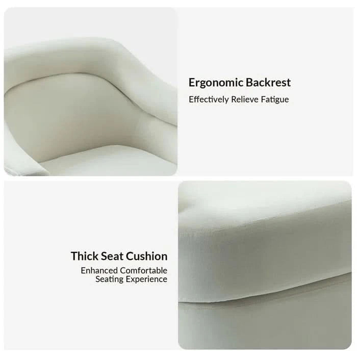 This striking barrel chair adds plenty of glam flare and a distinctly curved silhouette to your family area or living room. Its curving solid and engineered wood frame and shiny gold-finished metal base give it a mid-century style that we adore. The neutral hue of the plush velvet upholstery goes well with a wide range of color palettes. Additionally, the seat has pocket springs and foam padding to provide the ideal amount of support while you unwind. This sleek, sophisticated chair is completed with delicate stitching and tufted accents.