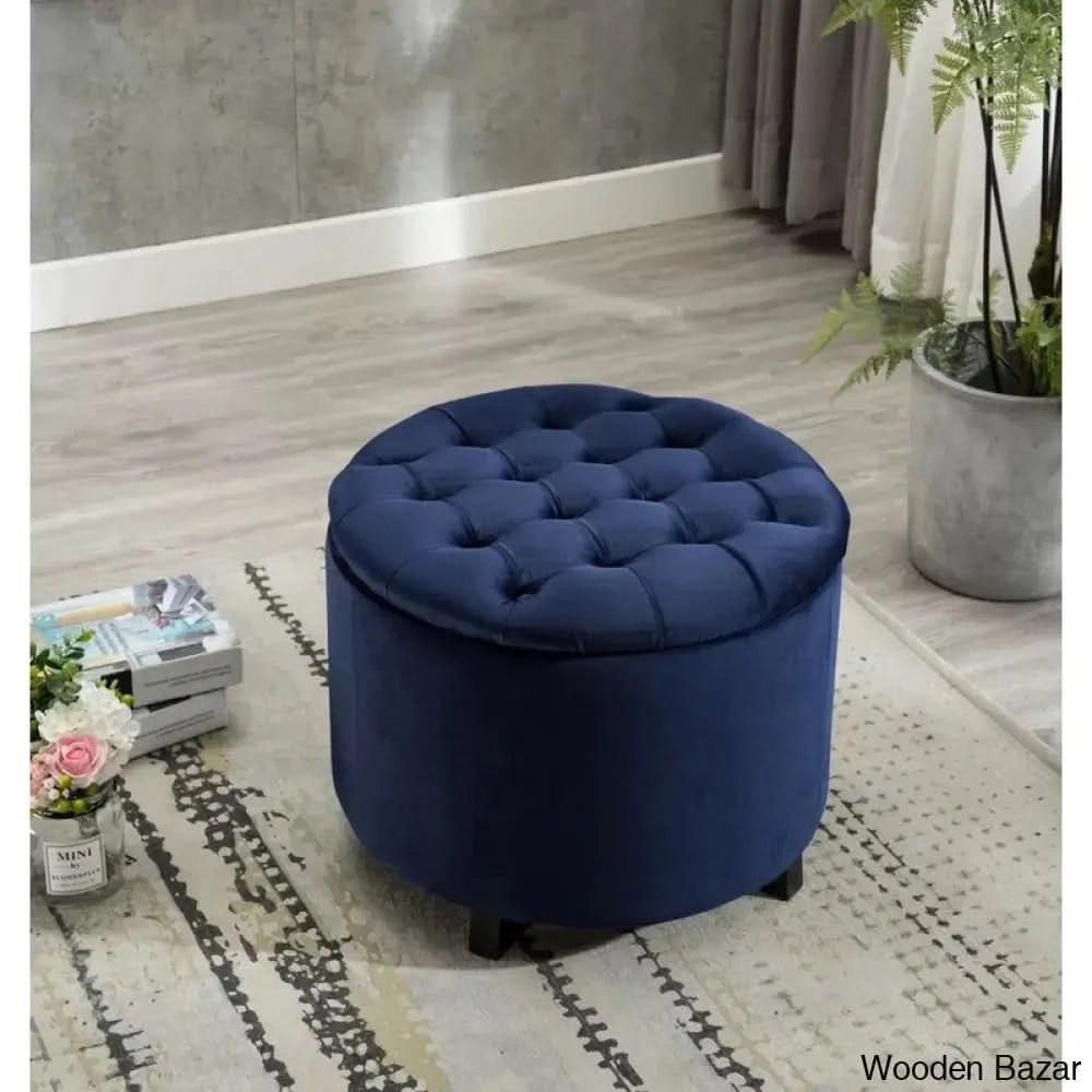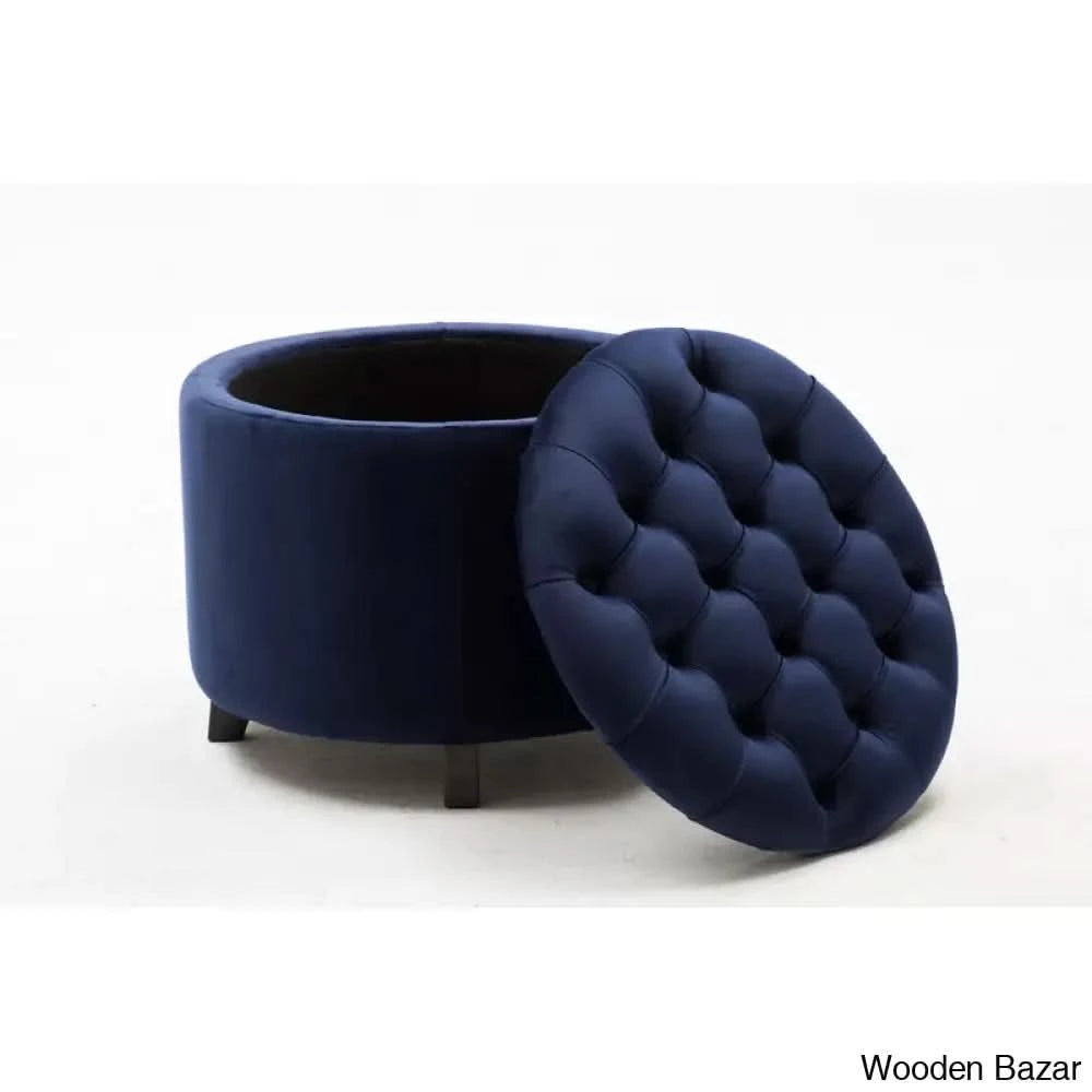 Storage meets the style of this ottoman, making it a must-have addition to your living room. It's built with a solid and engineered wood frame and has a drum silhouette with tapered and splayed legs. The velvet upholstery adds a luxe look and button tufting on the seat gives it a vintage flair. Foam-filling in the seat provides just the right amount of support as you kick your feet up. Plus, you can lift off the seat to reveal a storage spot for your spare blankets and pillows.