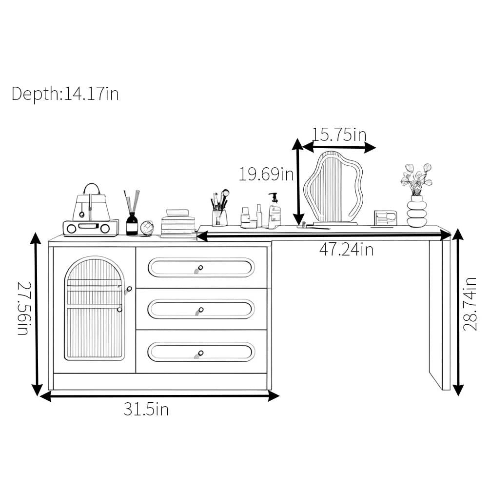 - Modern Minimalist Vanity Set with Curved Mirror and Storage Drawers