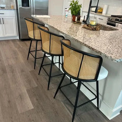 Add comfort and style to your kitchen or bar area with these modern swivel stools. Featuring a 360-degree swivel function, ergonomic curved backrest, and built-in footrest, these stools ensure effortless movement and extended comfort. The thickly padded seat sits atop durable black iron legs, while multiple fabric and color options—including bouclé and PU—let you customize your space with ease.