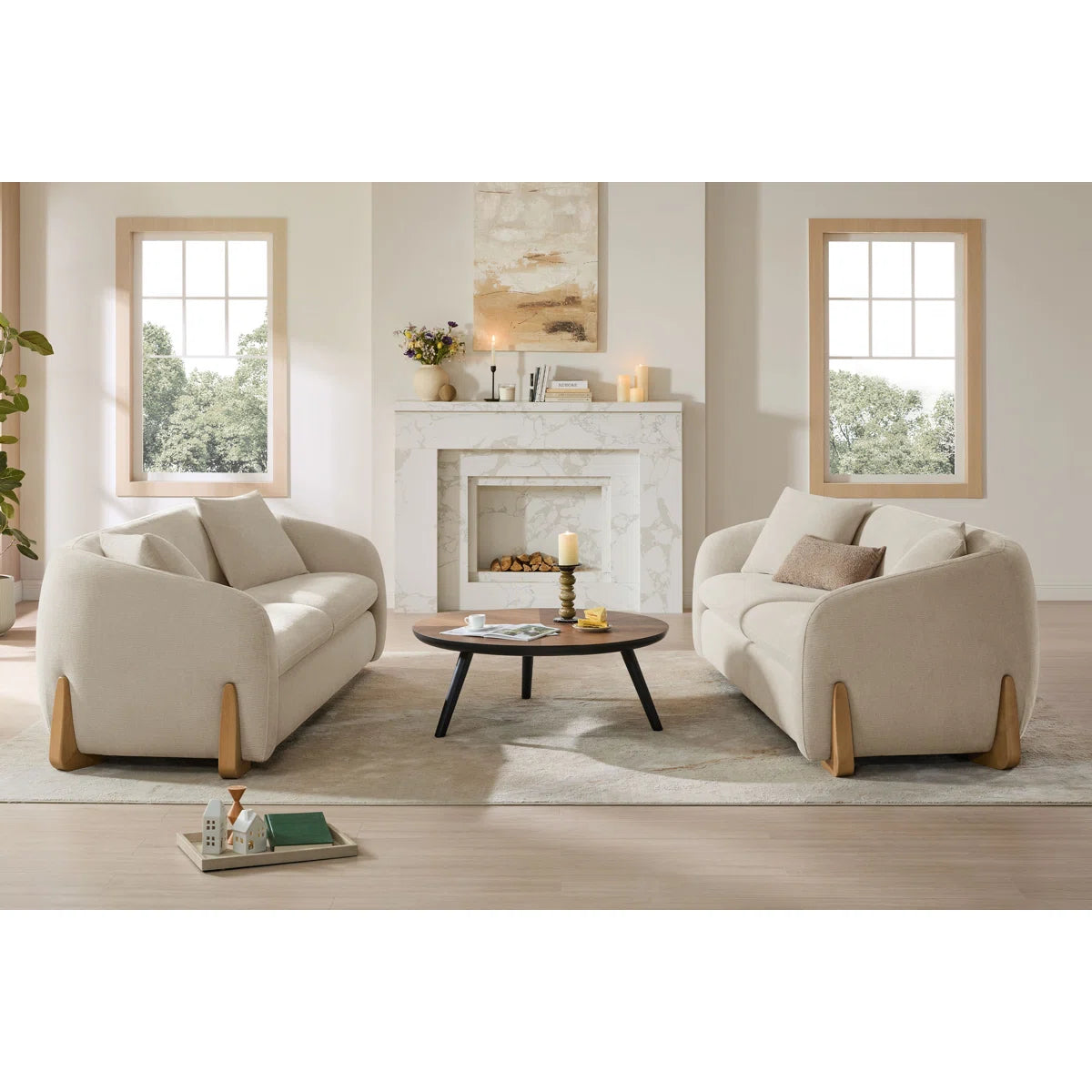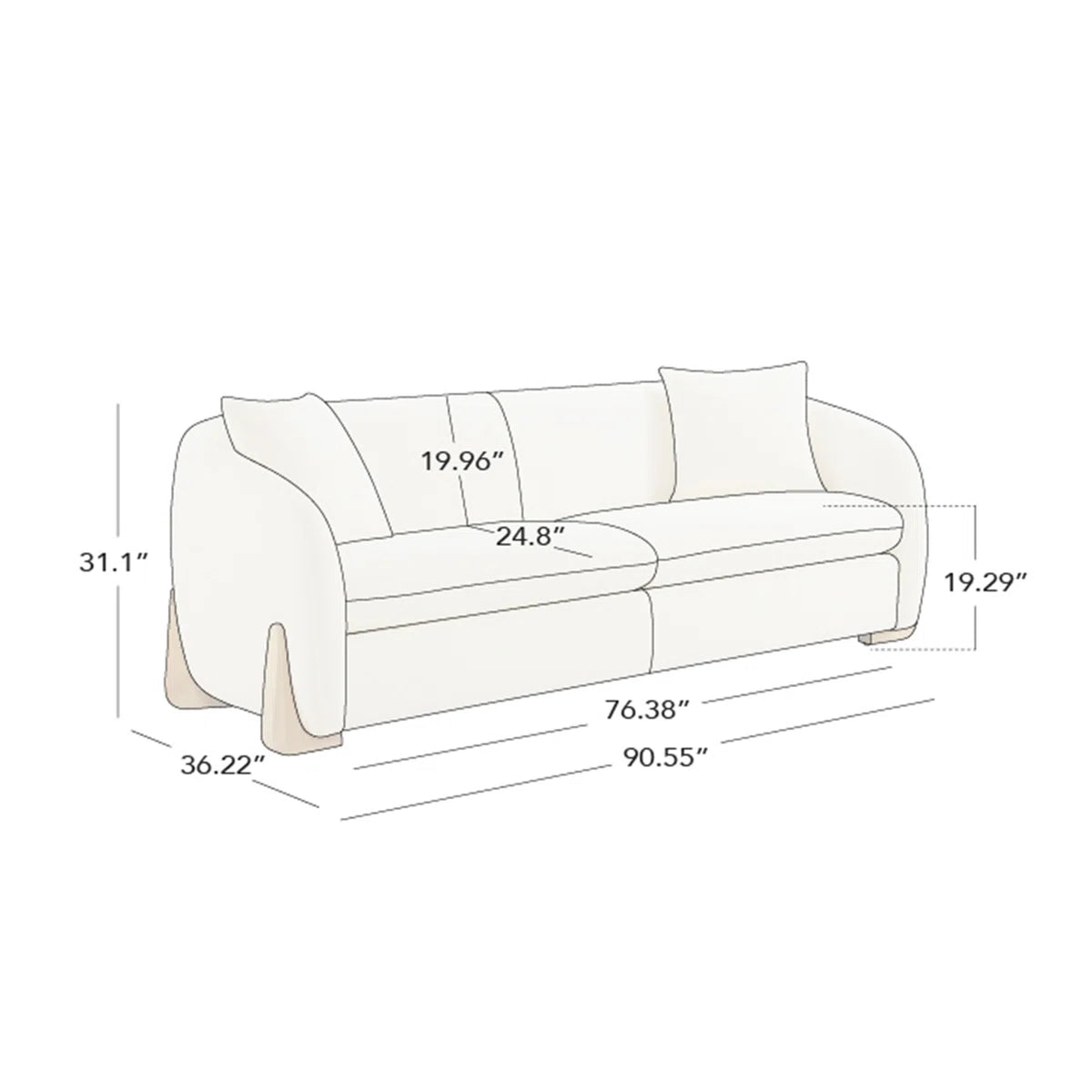 Divaag Upholstered Modern Curved Chenille Sofa with Unique Wood Legs