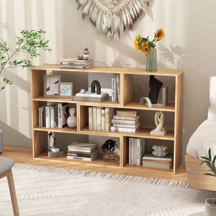 Elevate your living space with our versatile Geometric Bookcase, a masterpiece of form and function. This isn't just a bookshelf; it's a stylish statement piece designed to adapt to your modern lifestyle. Its unique horizontal design and generous storage make it the perfect solution for displaying your cherished book collection, family photos, and decorative accents, while also serving as a sturdy console table or TV stand. Crafted for durability and designed for elegance, it brings both order and beauty to any room in your home.