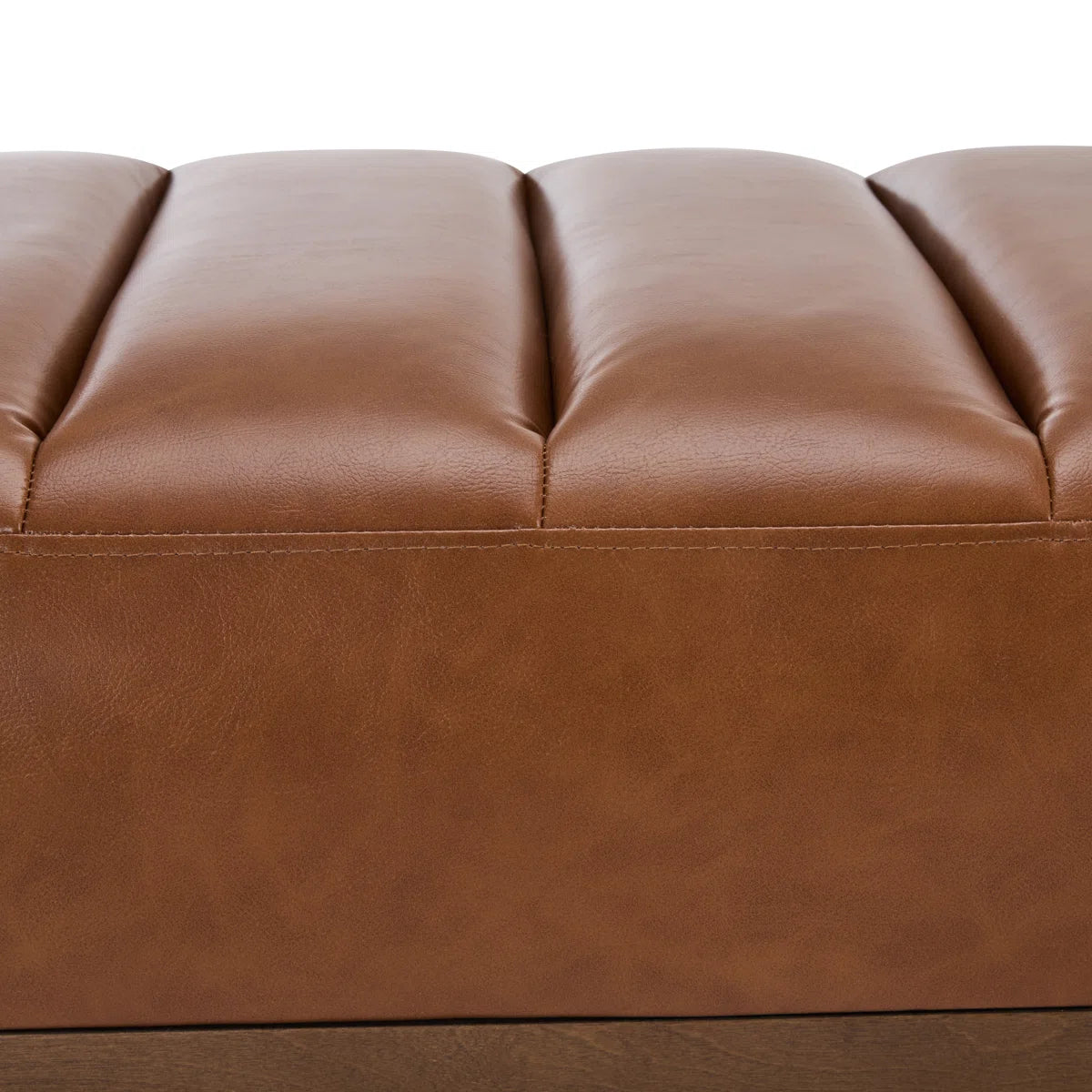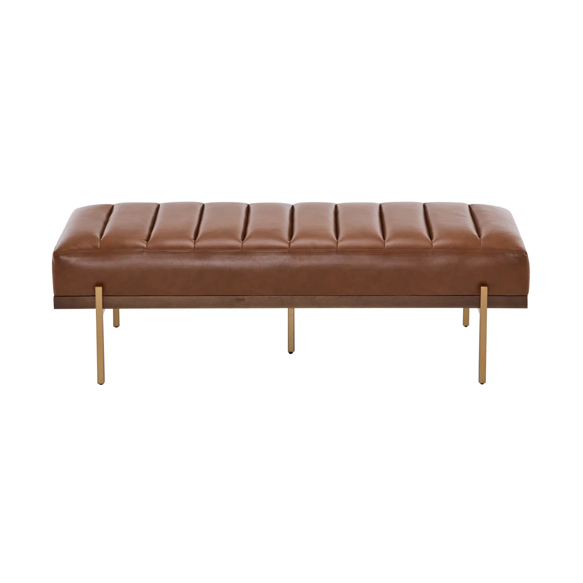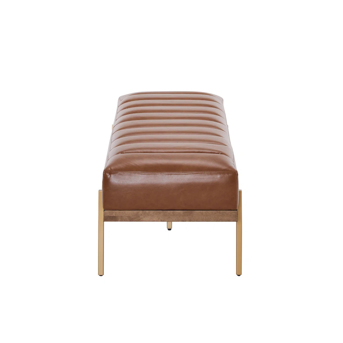 Transform your space with the elegant simplicity and refined style of this modern channel-tufted bench. Designed to be a sophisticated centerpiece, it features a sleek, backless silhouette with exquisite vertical channel tufting. The durable PU leather upholstery rests atop a sturdy and glamorous gold metal base, creating a perfect fusion of contemporary aesthetics and practical functionality. Its versatile design allows it to serve as comfortable seating, a chic ottoman, or even a unique coffee table, making it an ideal addition to any living room, bedroom, or entryway.