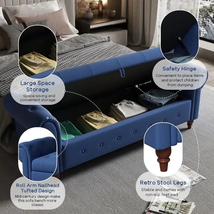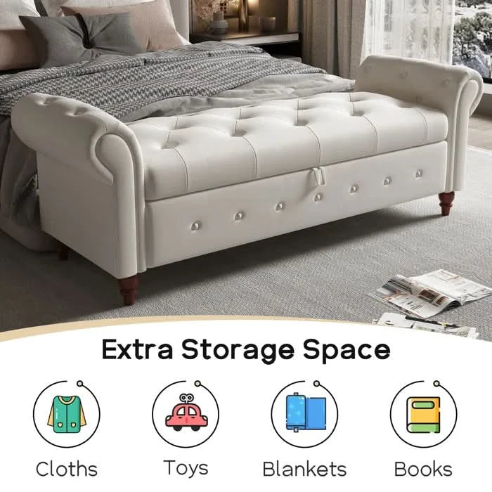 This product is a Modern Bedroom Storage Ottoman Bench. It's designed to be a highly versatile piece of furniture that combines seating, storage, and a stylish aesthetic for various rooms in the home.