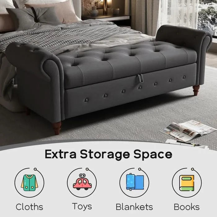 In summary, this Modern Bedroom Storage Ottoman Bench is a stylish and practical furniture piece designed for small spaces. It offers a comfortable seating option, significant hidden storage, and a luxurious contemporary look, all with an exceptionally easy assembly process.