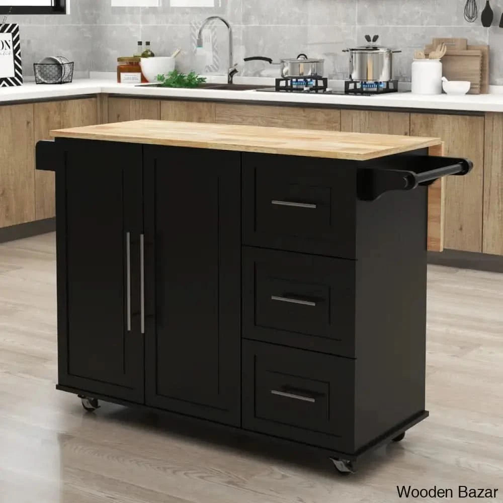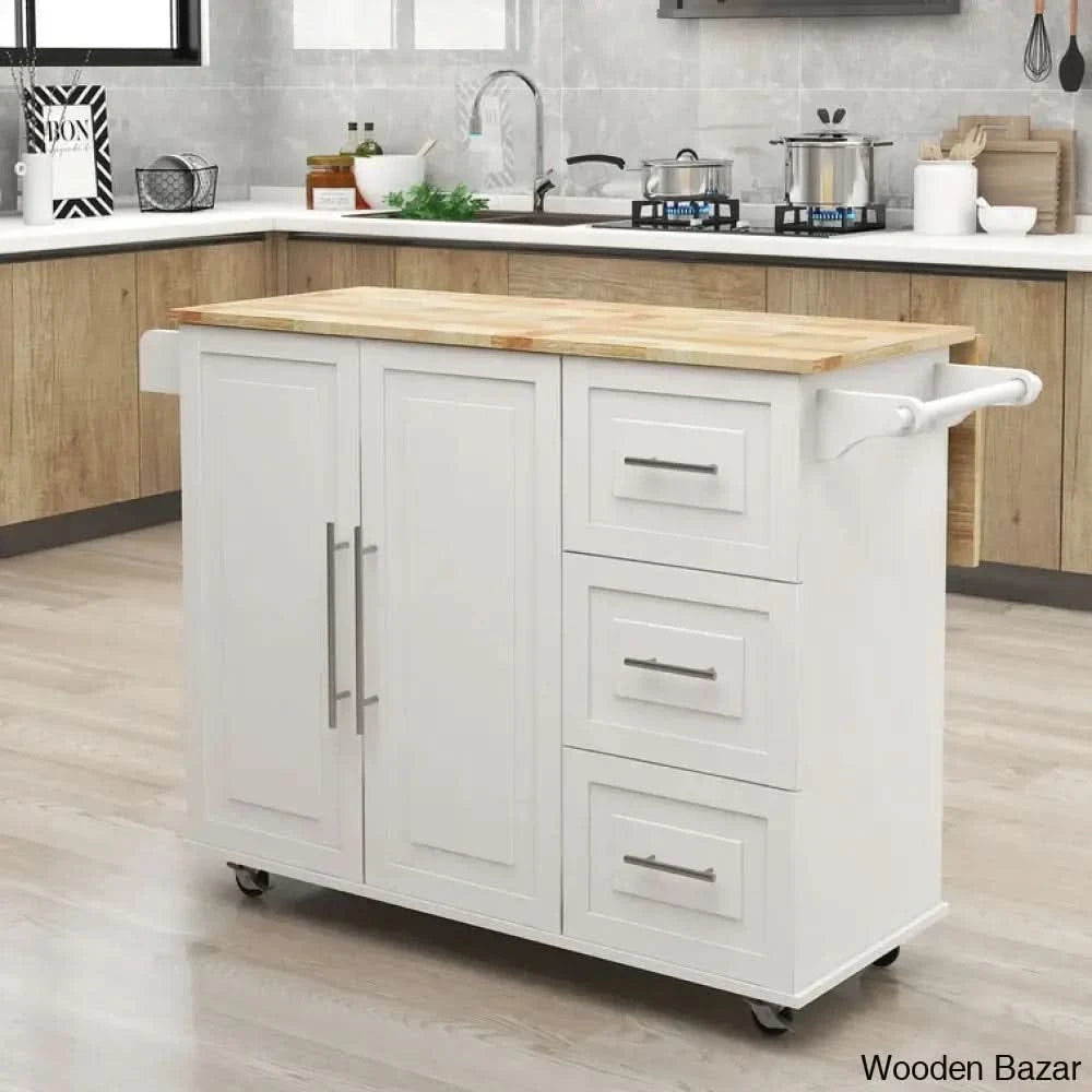 Karole 53.54'' Wide Rolling Kitchen Cart with Solid Wood Top