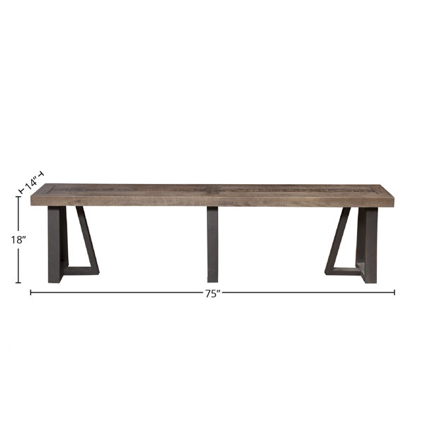 This bench is the perfect choice for your area, whether you need a place to sit while tying your shoes in the morning or you want to accommodate a few more guests at the dinner table. The rectangular seat is made of solid and repurposed pine wood and rests on three black-finished, angular sled legs. Additionally, a natural-hued stain gives it distressed detailing for a reclaimed, rustic appearance. This lodge-worthy item can accommodate up to 300 pounds and comfortably sit two persons.
