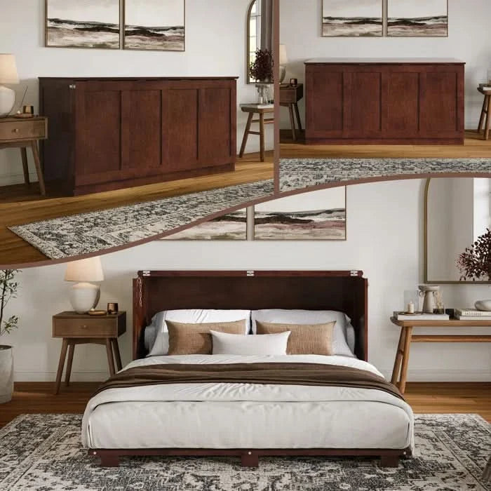 Low Profile Wood Murphy Bed Chest with 6" Mattress - Wooden bazar
