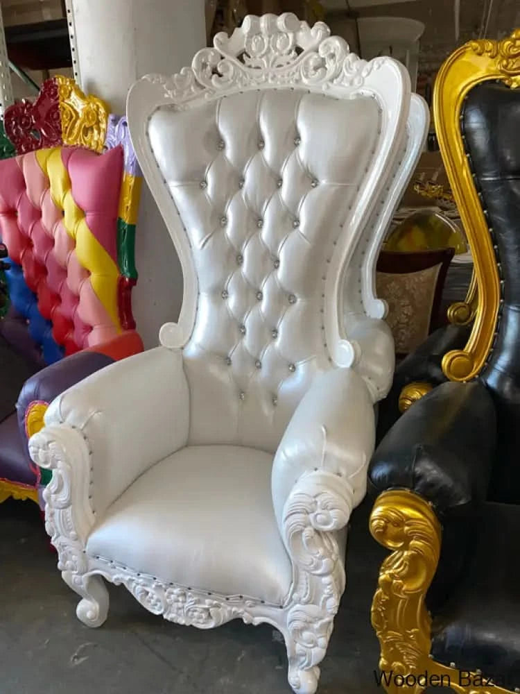 Luxurious High Back Throne Chair (White Pearl)