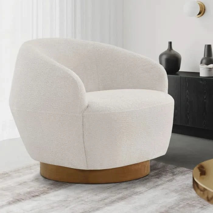 Mallakam Boucle Upholstered Swivel Barrel Chair - Wooden Bazar