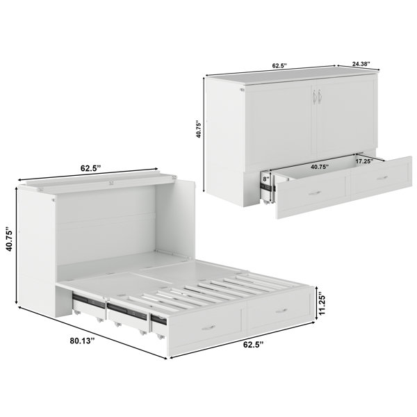 Murphy Bed Chest with 6" Mattress, Storage and Built-in Charger