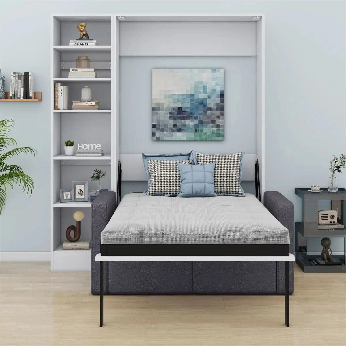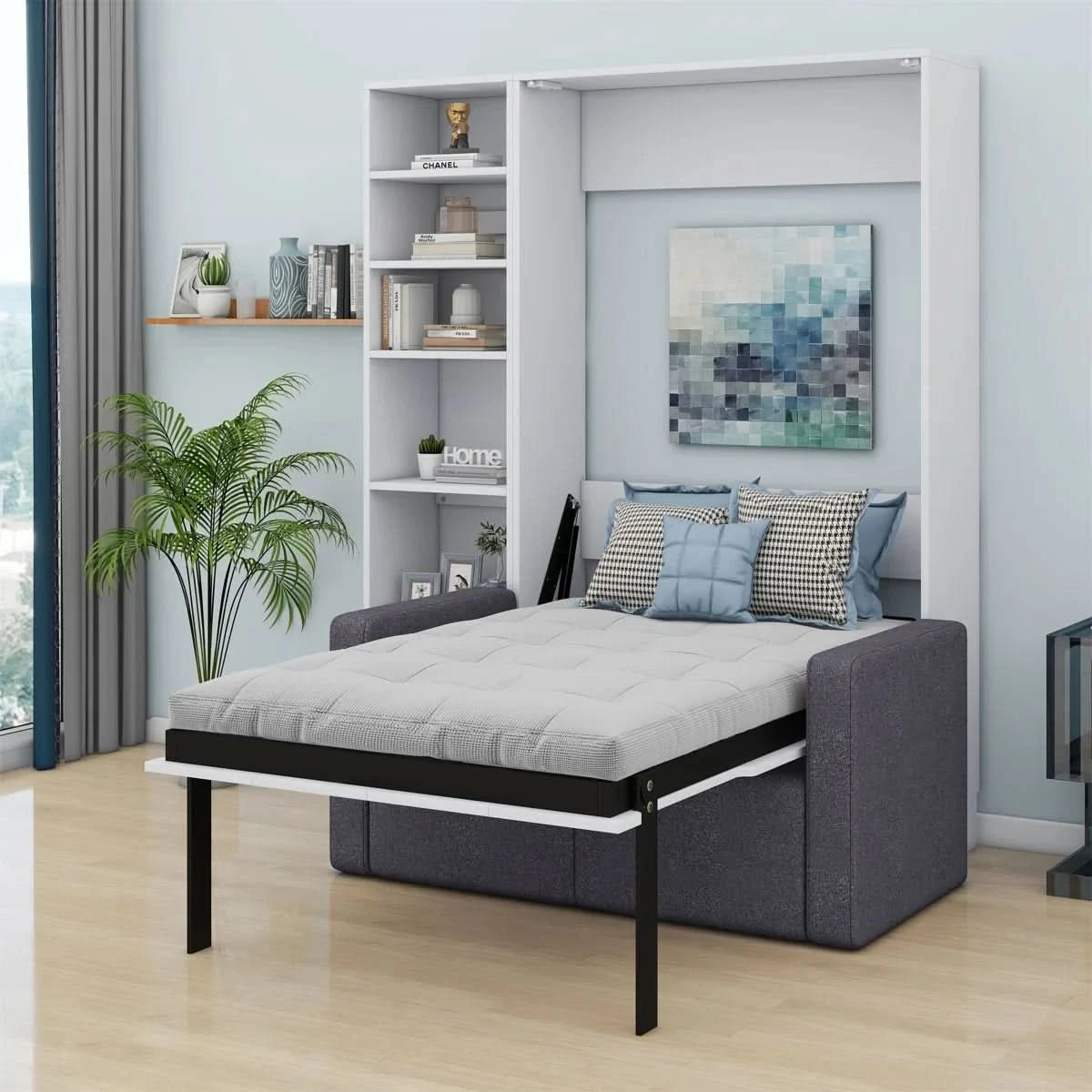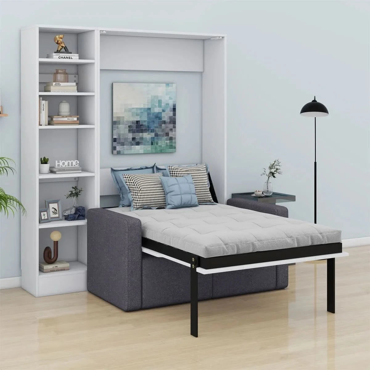 Welcome to the ultimate solution for compact urban living! Our Murphy Bed with an integrated Sofa and Shelves is a masterclass in intelligent Indian design, created to multiply the functionality of your space. It’s not just a bed; it’s a comfortable lounge by day, a peaceful sleeping haven by night, and a smart storage unit—all in one elegant piece. Perfect for studio apartments, modest homes, or a multi-purpose guest room, it offers unparalleled versatility without compromising on style or comfort.