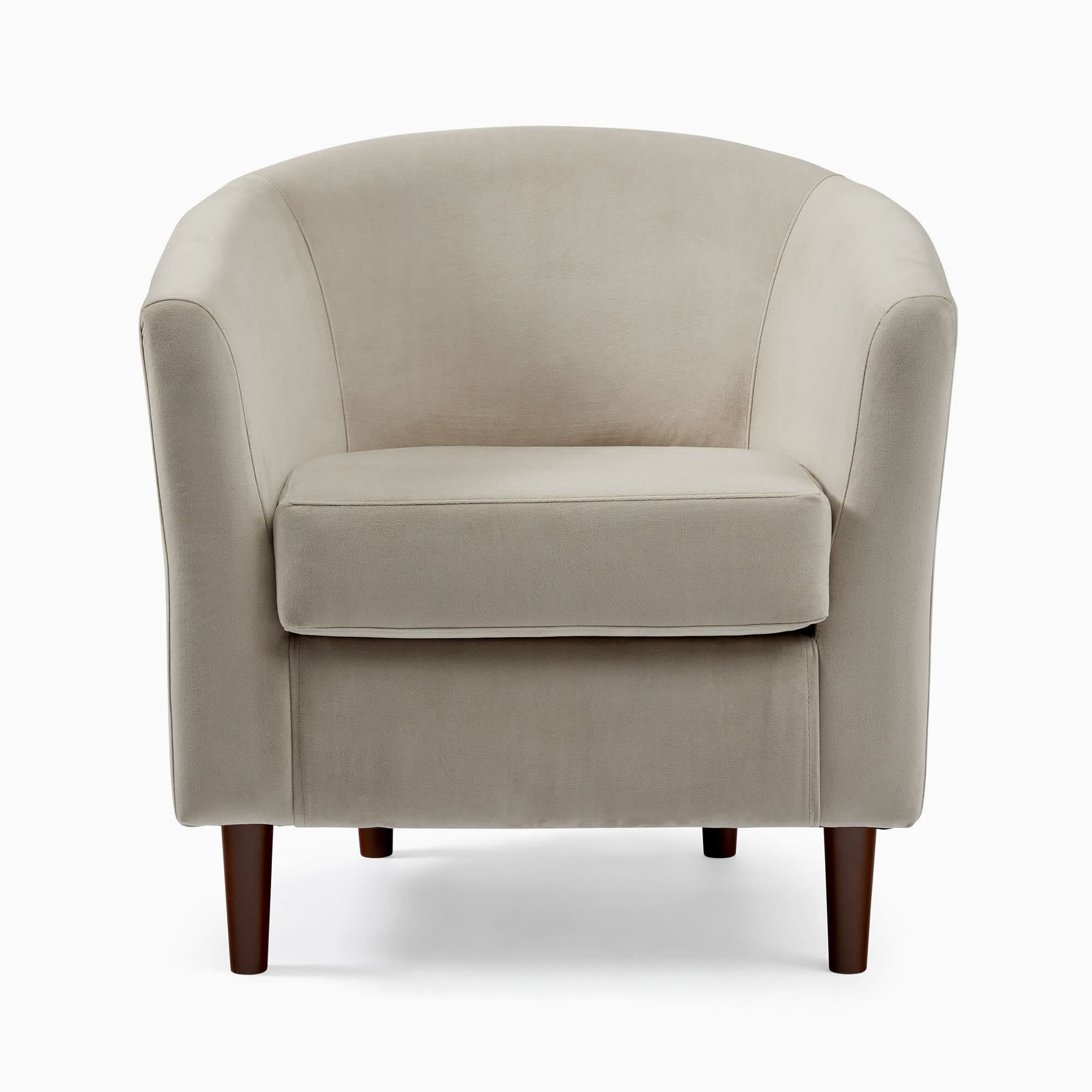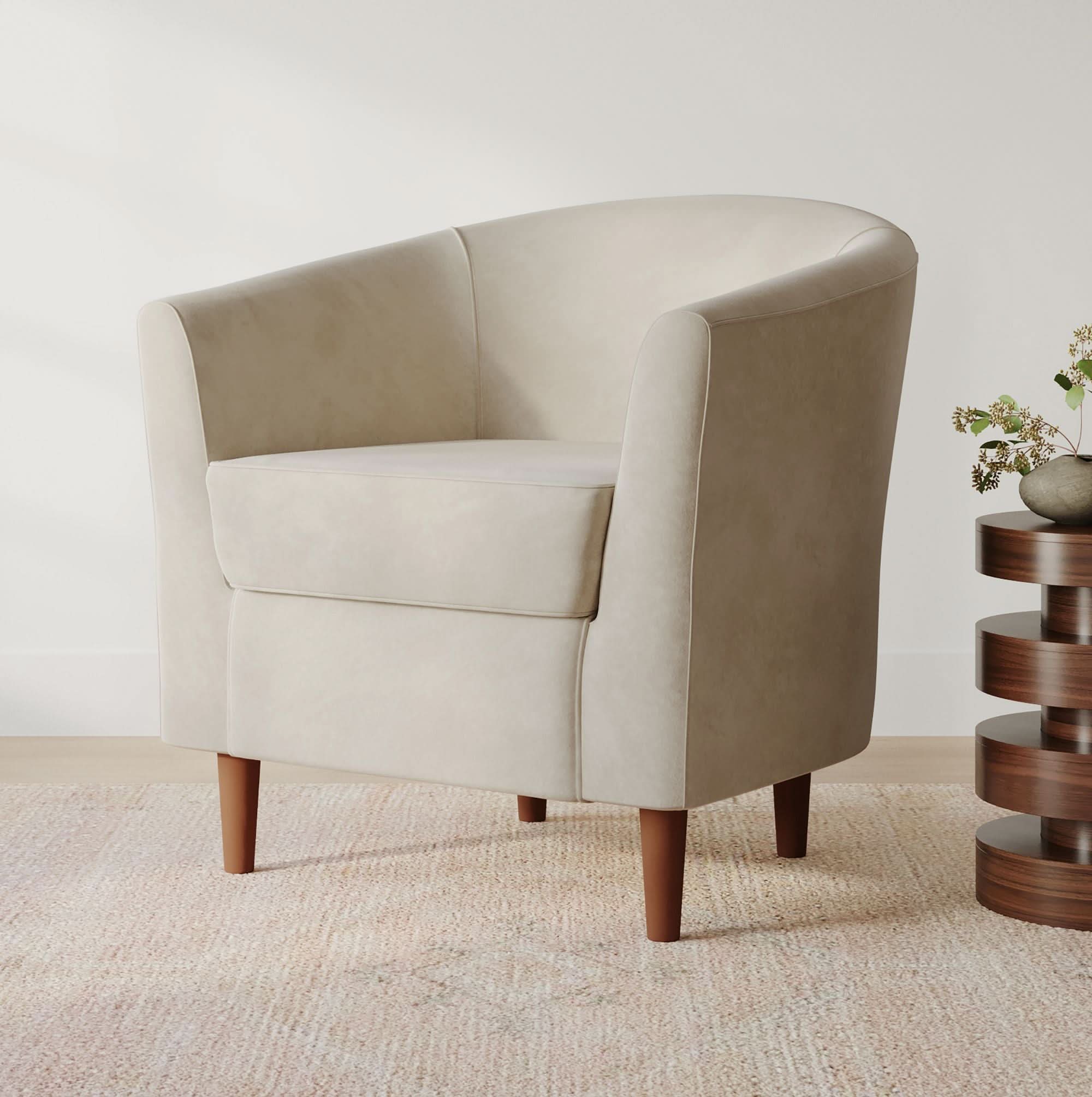 Naizun Barrel Accent Chair in Soft Taupe Upholstery with Tapered Wooden Legs - Wooden bazar