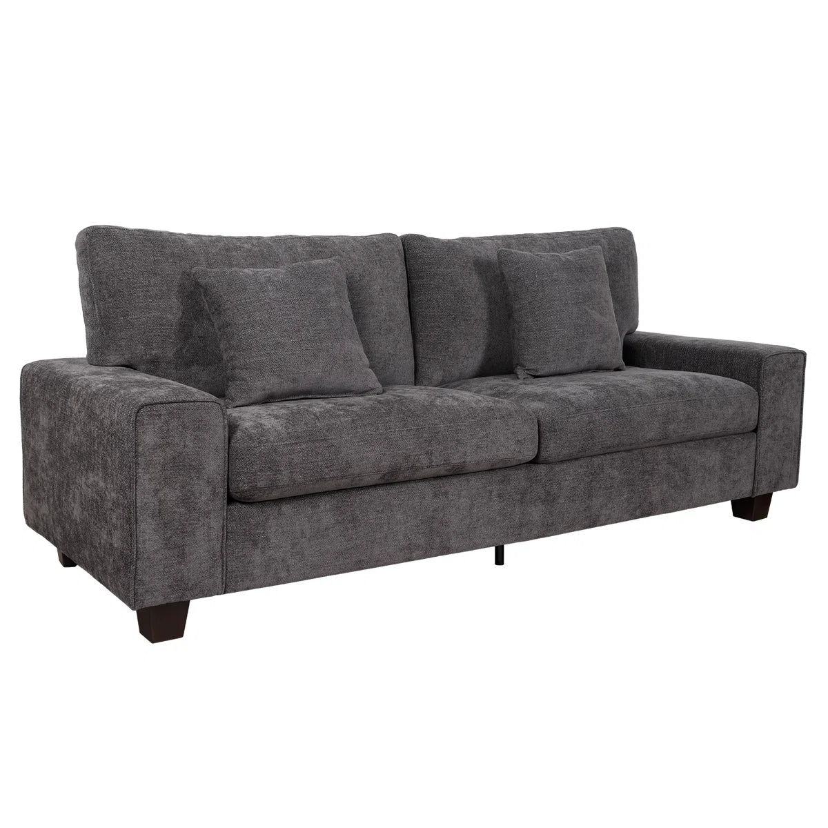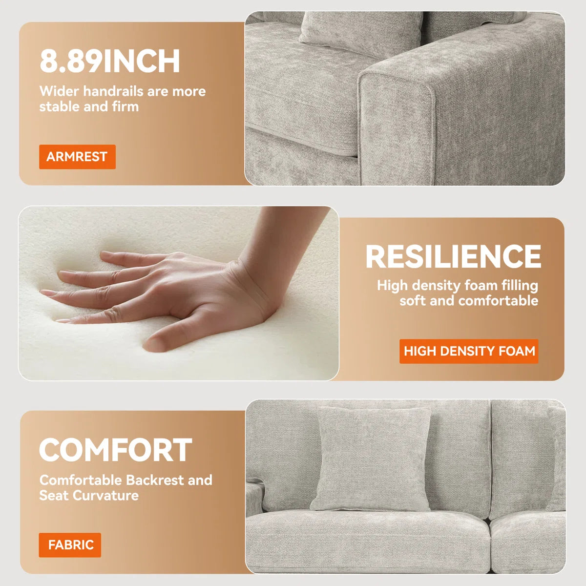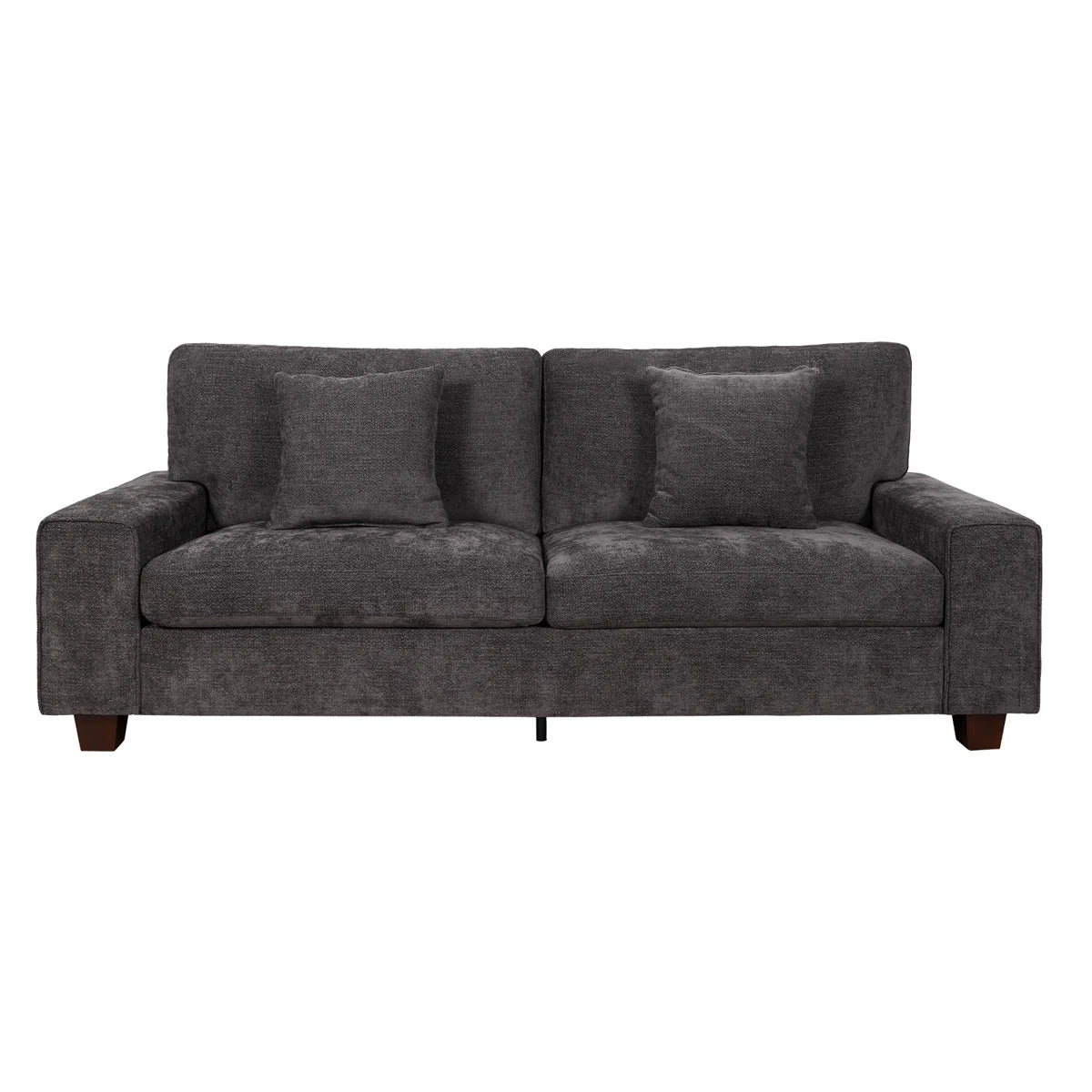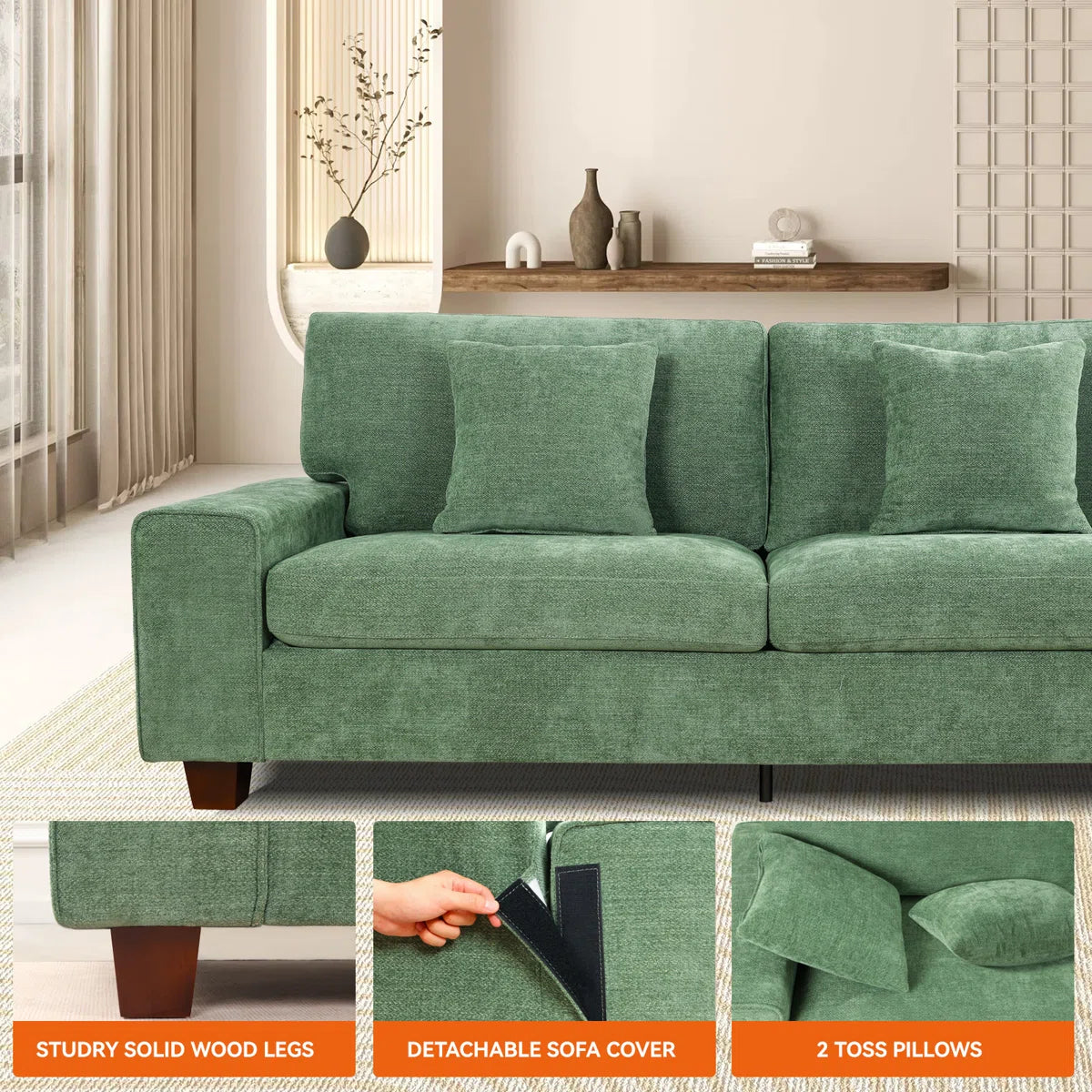 Comfort, robustness, and carefree style are all combined in this little chenille sofa. Plush foam cushions and sinuous springs give supportive seating for up to three people, while channel tufting and welted embellishments accentuate its clean-lined shape. It is designed to endure regular use and is upholstered in a soft, stain-resistant fabric. This sofa is ideal for compact places in busy homes because of its 88.58" width and washable, detachable cushion coverings.