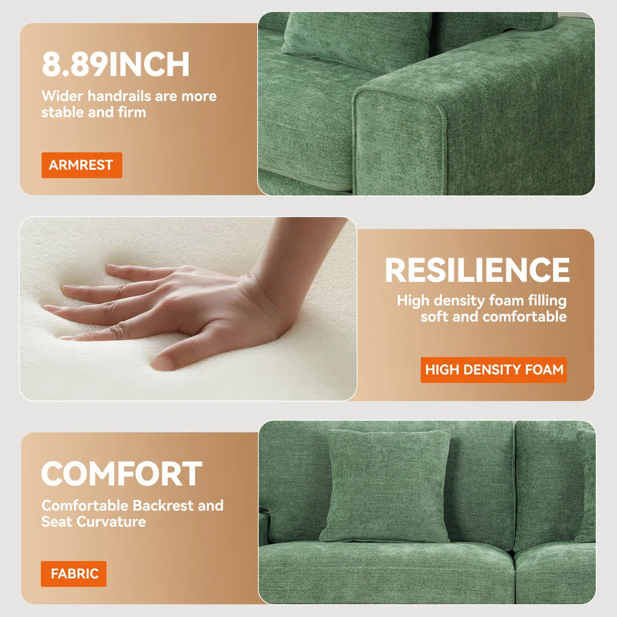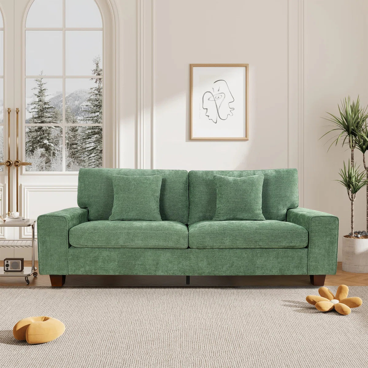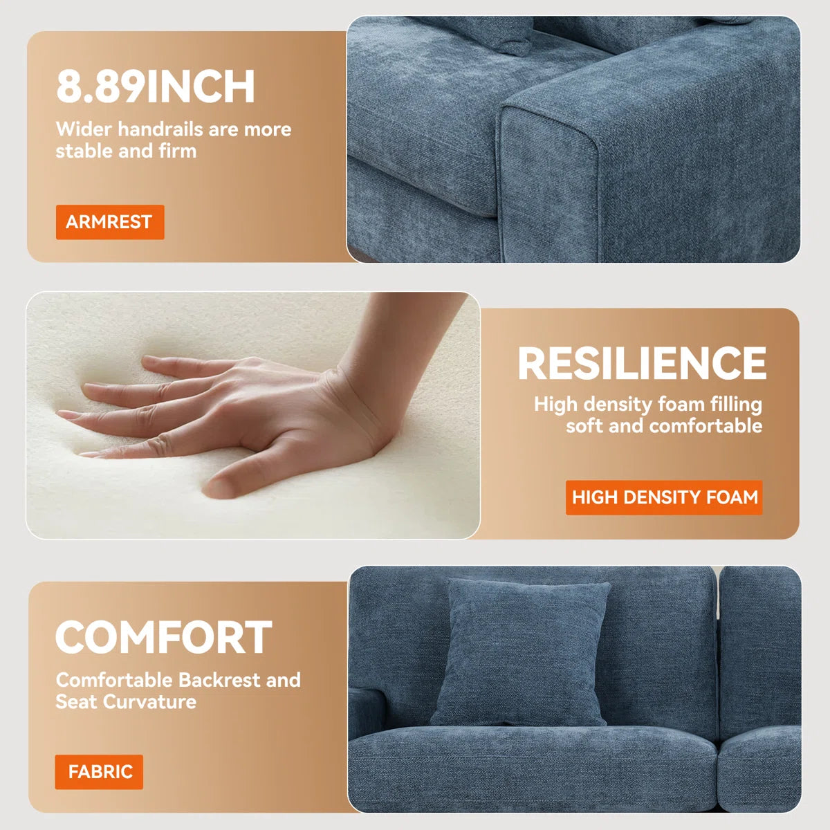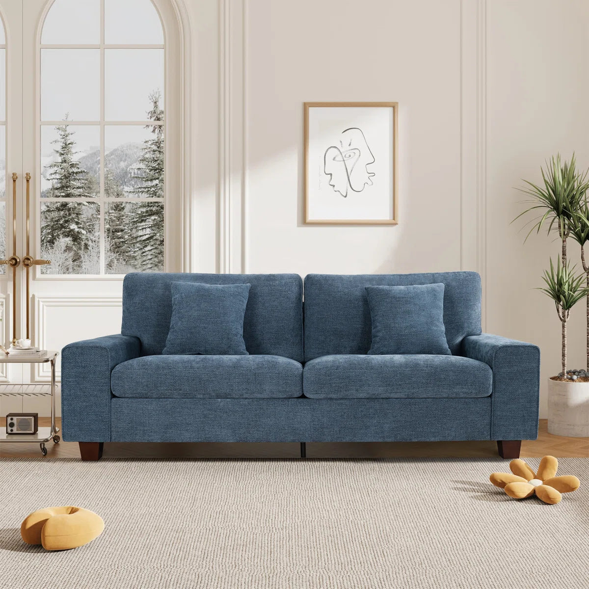 Comfort, robustness, and carefree style are all combined in this little chenille sofa. Plush foam cushions and sinuous springs give supportive seating for up to three people, while channel tufting and welted embellishments accentuate its clean-lined shape. It is designed to endure regular use and is upholstered in a soft, stain-resistant fabric. This sofa is ideal for compact places in busy homes because of its 88.58" width and washable, detachable cushion coverings.