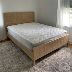Bold yet breezy, this platform bed features clean lines and striking cane detailing for a natural-modern look. Crafted from kiln-dried solid mango wood in multiple finish options, it showcases a rectangular headboard and a low-profile silhouette. A built-in slat system means no box spring is required—just add your favorite mattress.