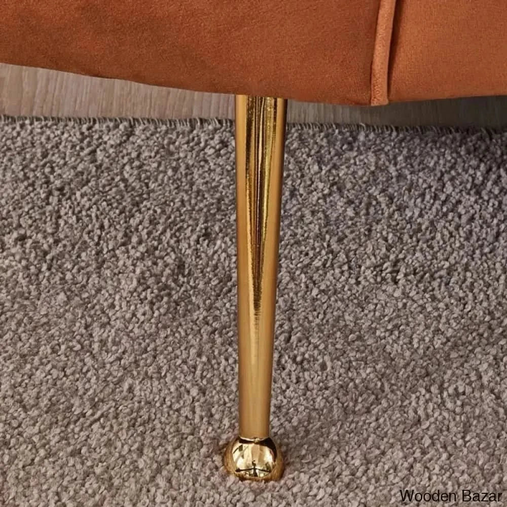 Boasting a beautifully curved back, this orange sofa will make a modern and chic showstopper to any home decor. Upholstered in orange velvet, the foam-filled seat and curved back provide great comfort. This sofa is brilliantly stitched and immaculately curved. With a touch of old Hollywood glam, the sofa is perfect for a photoshoot or paired with its matching armchair for a classy lounge area. Thanks to this unique shape, the sofa is a real eye-catcher in any living area.