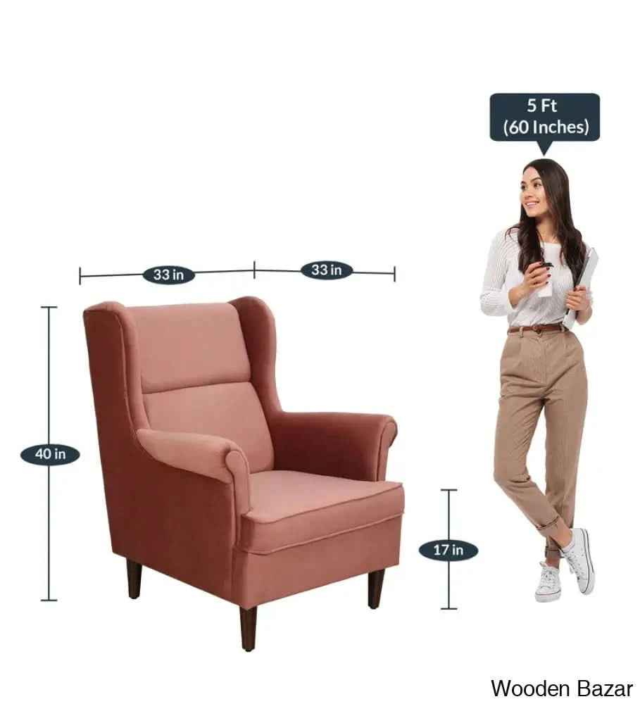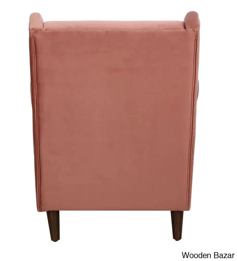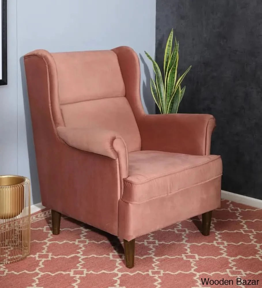 - Alvarez Wing Chair in Velvet Blush- Wooden Bazar