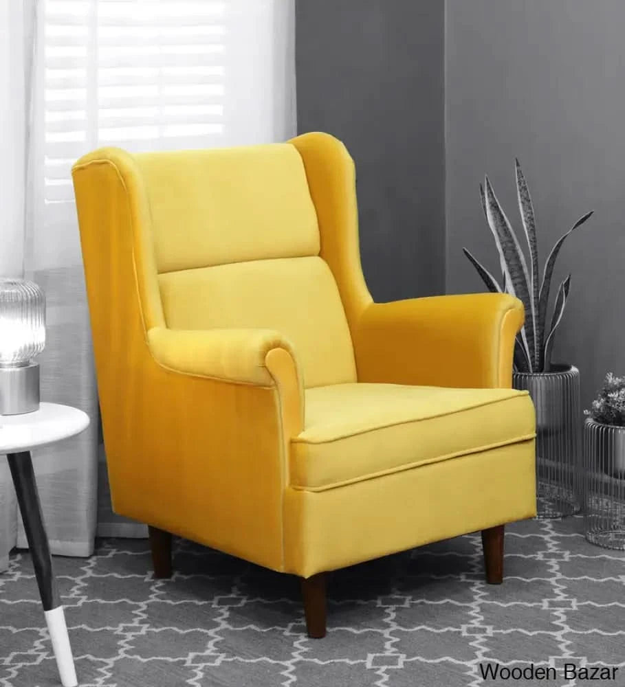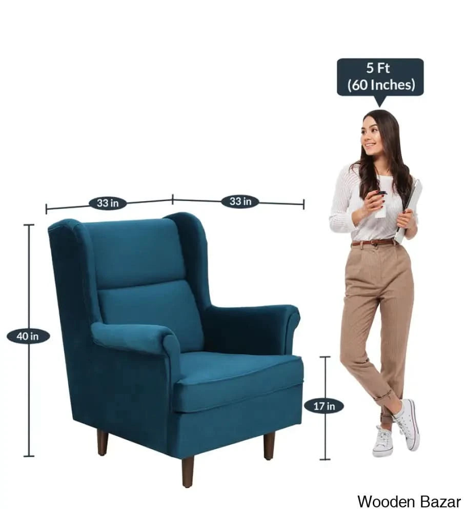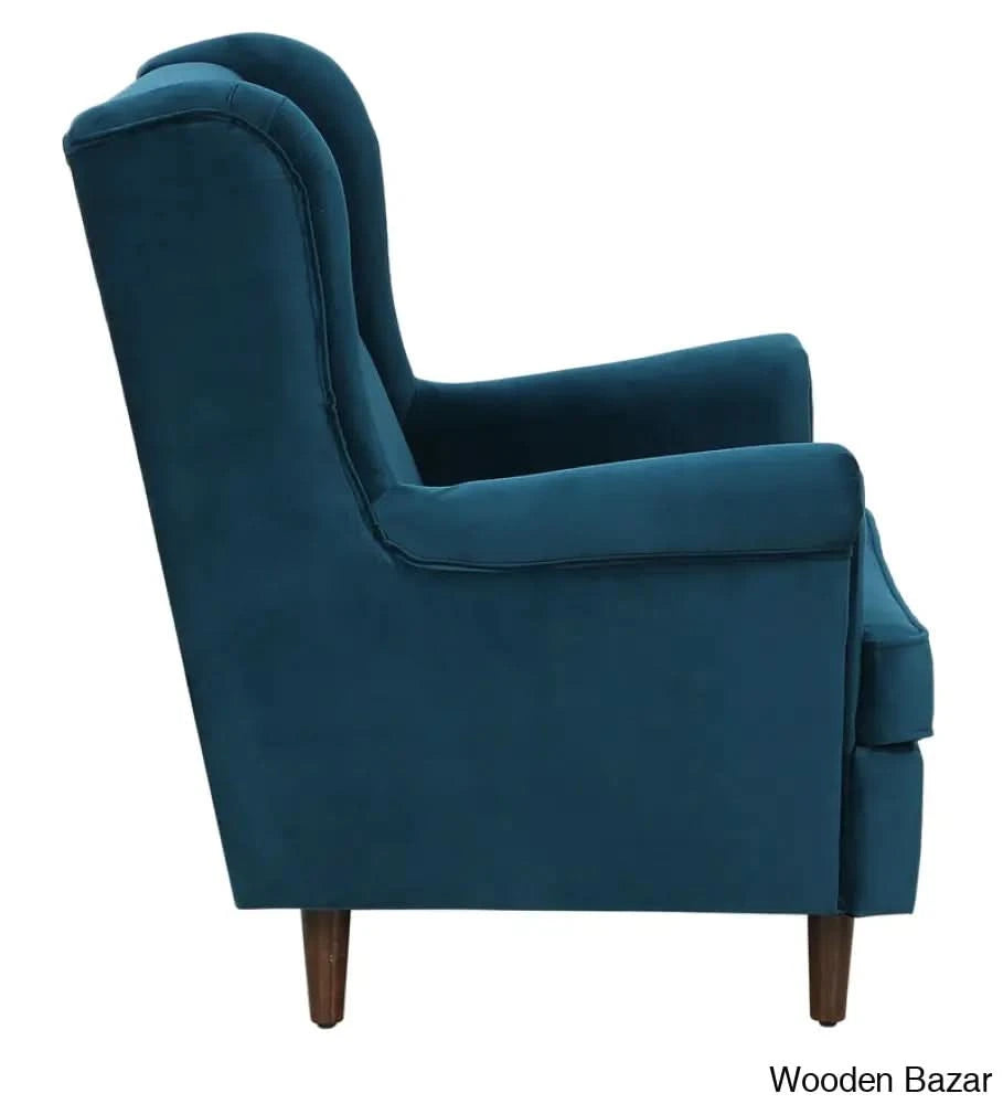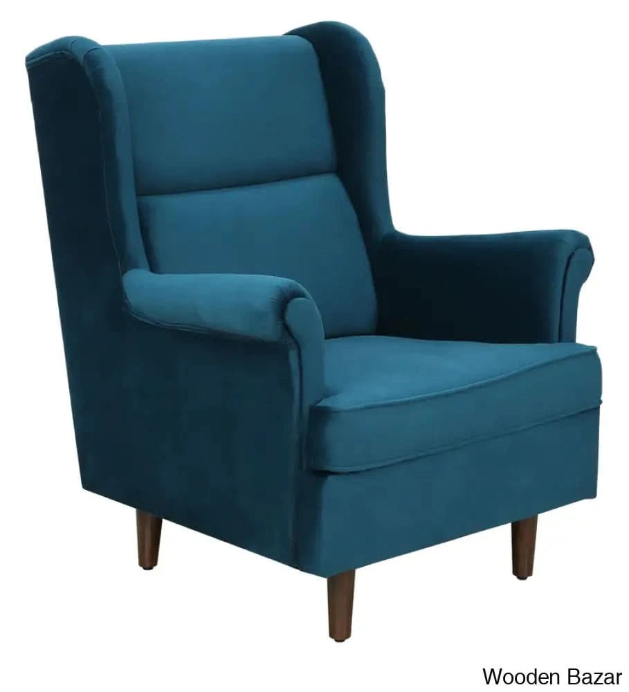 - Alvarez Wing Chair in Velvet Blush- Wooden Bazar