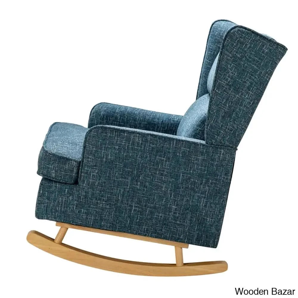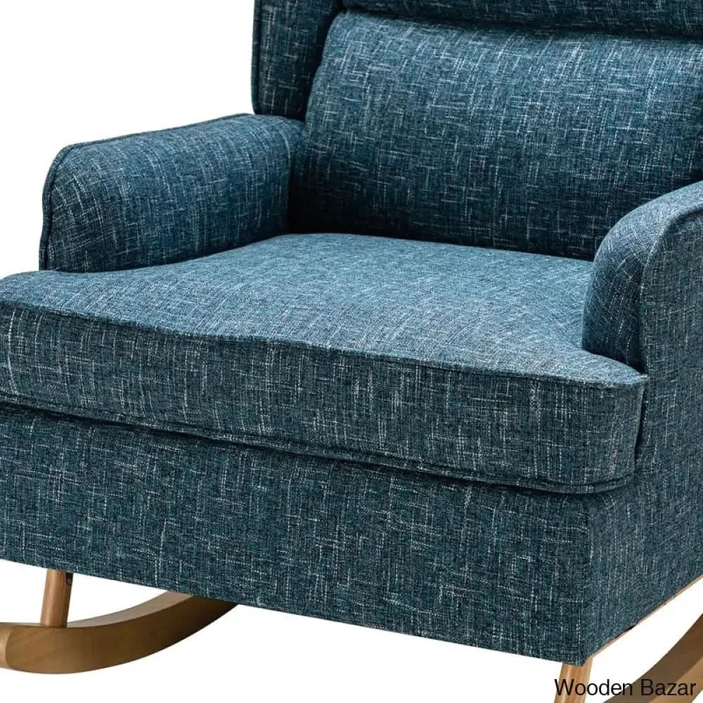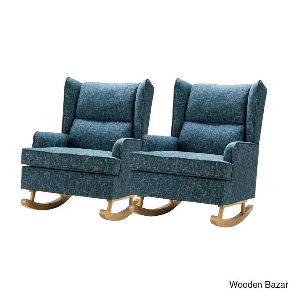 Add more fun to your space with a design that is equally functional and stylish. This modern rocking wingback chair set including two single chairs is a wonderful addition to any living room and home with its random solid colors that blend with any design taste. Even if space is at a premium, you can still be delighted in the hypnotic relaxation, a modern rocking chair offers as the one is effortless to incorporate into any corner with its modest size. Crafted with solid and manufactured wood and filled with foam, silk floss, and polypropylene cotton, every piece of wingback chair with a subtly curved natural-hued solid wooden base and built-in pocket spring feature a simple yet fashionable charm in any living room. As a classic complement to the textured 100% polyester fabric that covers the upholstered seat and back, this high-quality rocking chair set is a perfect choice in your living room, bedroom, and other places. You can also sit on the balcony to enjoy the view.