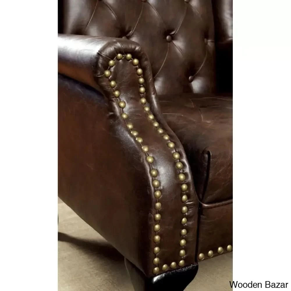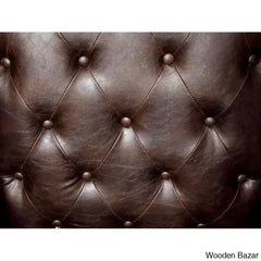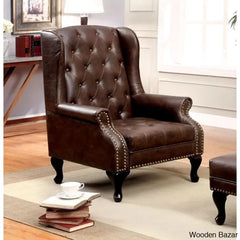 Lend a regal air to your living space with this gorgeous accent chair set. The chair showcases a traditional appeal, with its classic wing style, rolled arms, and cabriole legs. The seat and back come padded for comfort, expertly upholstered in rich leatherette with button tufted accents.